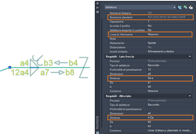 È possibile visualizzare e modificare tutte le proprietà dei simboli di saldatura nella tavolozza Proprietà.