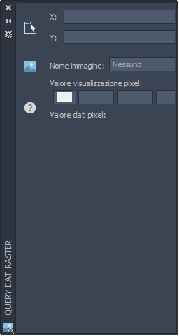 Specifica i valori relativi ad altri dati dei pixel sottostanti il cursore. I valori dipendono dal tipo di immagine. Ad esempio, 0-255 per un'immagine a colore indicizzato o in scala di grigi. Se l'immagine è in formato virgola mobile a 32 bit con una mappa dei colori della tavolozza, i dati possono riguardare l'elevazione, la pendenza o l'aspetto, a seconda della mappa dei colori.