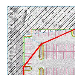 - Fare clic su Anteprima per vedere dove devono essere aggiunti i punti di controllo. Osservare che nelle aree in alto e in basso a sinistra e in basso a destra dell'area di parcheggio l'ampio bordo rosso si discosta notevolmente da alcune parti dell'area di parcheggio. Per correggere il problema, è possibile aggiungere un punto di controllo in ciascuna di queste aree. Premere INVIO per chiudere l'anteprima.