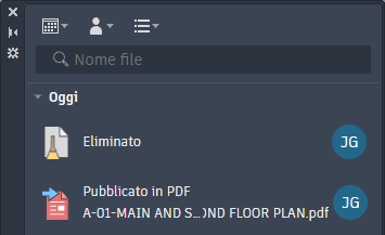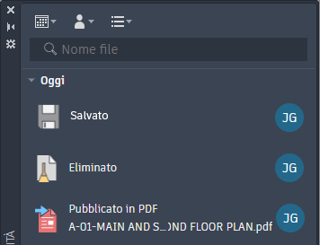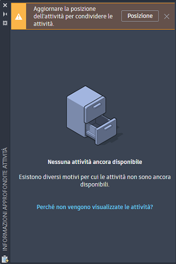 Quando si apre un disegno, viene mostrata un'attività per ogni disegno che fa riferimento al disegno aperto.