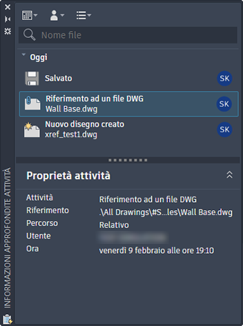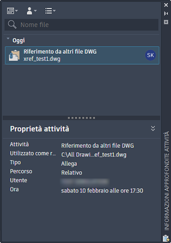 Fare clic sull'attività Riferimento da altri file DWG per visualizzarne i dettagli.