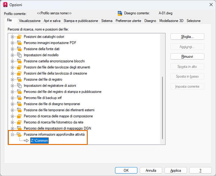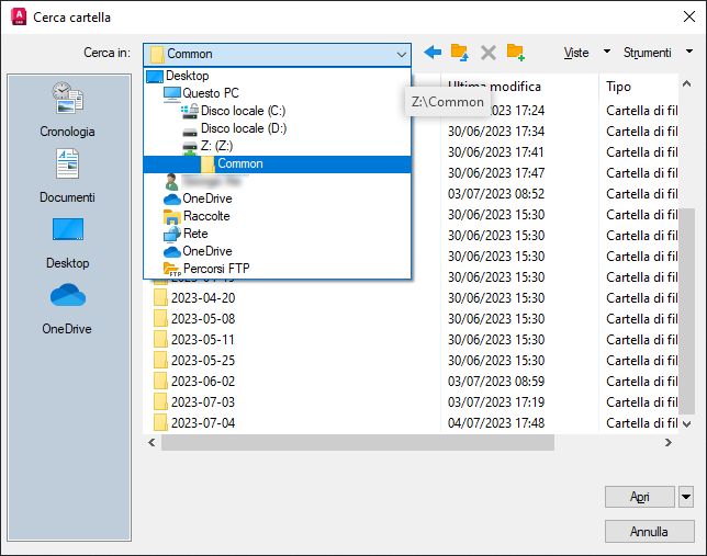 La prima cosa da fare è definire una posizione comune per le attività di disegno. Tale posizione dovrebbe trovarsi in una rete aziendale interna o in un percorso di memorizzazione nel cloud.