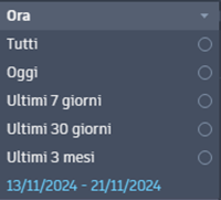 Per selezionare un intervallo di date, selezionare Personalizzato. Quindi, attivare il selettore dell'intervallo di date in basso a destra. Infine, selezionare la prima data e poi l'ultima data. L'intervallo scelto comparirà ora nel menu Data e ora.