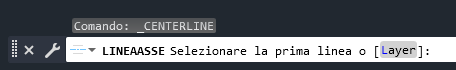 - Alla riga di comando, utilizzando la nuova opzione Layer dei comandi LINEAASSE e CENTRO.