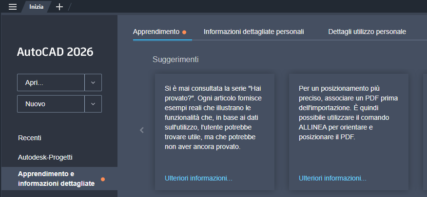 Sono illustrate le nuove funzionalità di questa release di AutoCAD 2026. Per informazioni tecniche, vedere le note di rilascio.