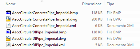 Figura 1: file di catalogo per due tipi di condotta circolare
