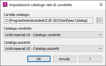 Figura 2: finestra di dialogo per l'impostazione dei cataloghi per le reti di condotte