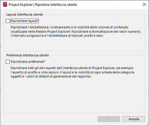 Le Preferenze determinano qualsiasi aspetto dell'interfaccia utente di Project Explorer che non è rilevante per il layout delle colonne di dati e per la generazione di rapporti. Ad esempio, gli schemi di colori e le impostazioni di scala di default per le viste profilo e sezione, le impostazioni font per l'interfaccia utente e la visibilità e il layout riquadro di ogni singola scheda Categoria oggetto nella finestra Project Explorer.