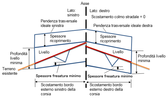 Questo strato di ricoprimento presuppone che il flapping sia applicato nei limiti di tolleranza pendenza. La quota altimetrica in corrispondenza del colmo stradale soddisfa entrambi i lati della sezione stradale.