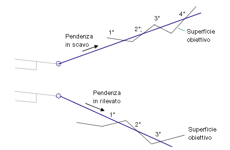 Punto di fine scarpata e punto di fine scarpata per la condizione di scavo o rilevato |