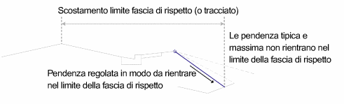 La pendenza tipica della scarpata fa sì che il punto di aggancio rientri nel limite di scostamento specificato dal valore numerico o dalla posizione del tracciato.