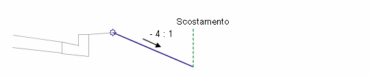 In modalità layout questo componente sezione tipo visualizza il collegamento disegnato allo scostamento specificato ad una pendenza -4 : 1. Il collegamento termina con una freccia rivolta verso l'esterno.