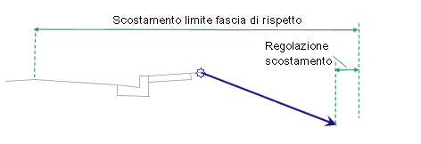 Valore +/- aggiunto allo Scostamento limite fascia di rispetto. Un valore di regolazione negativo sposta il punto di fine scarpata all'interno del limite della fascia di rispetto. Un valore positivo lo sposta all'esterno del limite della fascia di rispetto. |