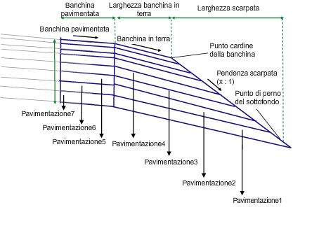 | Larghezza scarpata | Tracciato che definisce la posizione del punto di perno del sottofondo. | Facoltativo |