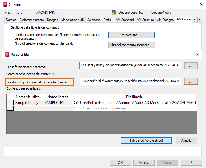 Tutte le librerie di contenuti standard vengono installate con AutoCAD Mechanical durante un'installazione indipendente. Se non si desidera che tutto il contenuto standard venga visualizzato nella libreria condivisa, è possibile rimuovere le librerie dopo l'installazione:
