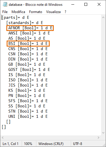 Modificare il file database.cfg aprendolo in Blocco note. Modificare i valori delle Librerie di contenuti standard non desiderate da "1" a "0". Di seguito è mostrato un esempio: