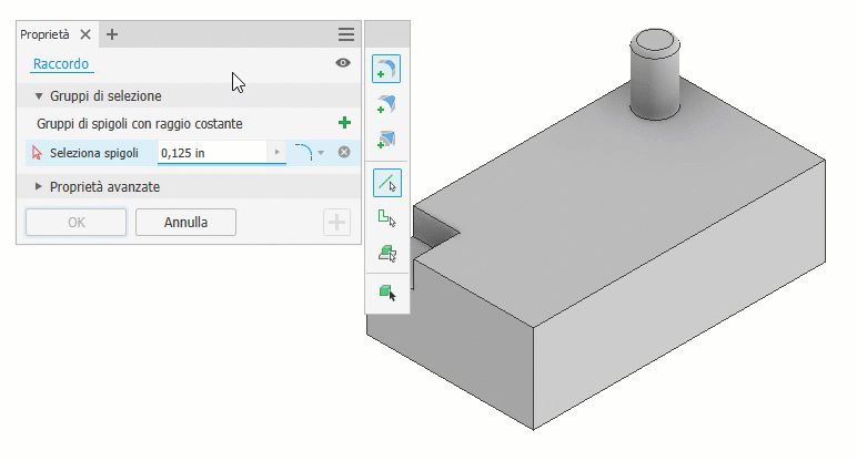 I raccordi sono lavorazioni posizionate che consentono di arrotondare o chiudere gli angoli interni o esterni o le lavorazioni di una parte.