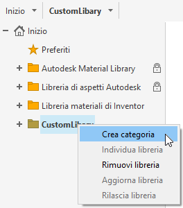 Fare clic con il pulsante destro del mouse sulla nuova libreria nel riquadro inferiore sinistro, quindi fare clic su *Crea categoria *e assegnare un nome alla categoria.
