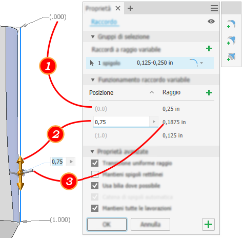 Il controllo di modifica del valore reale specifica i valori numerici per le operazioni di modellazione e modifica.