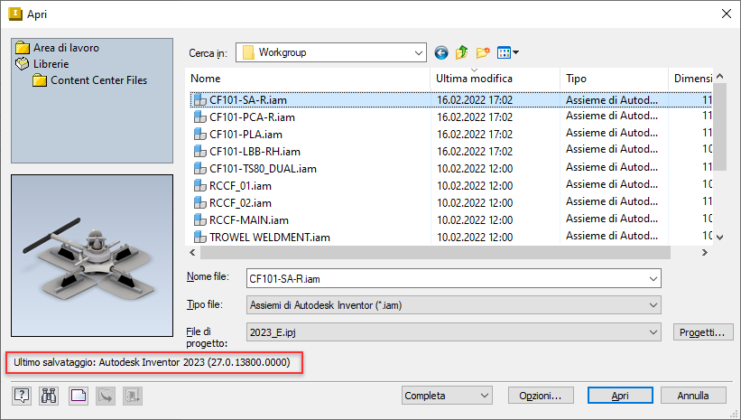 Individuare e selezionare il file di assieme (.iam) più recente da aprire.