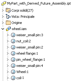Il browser visualizza il file di riferimento più recente. I nodi di un componente sono diversi dai componenti nativi di Inventor.