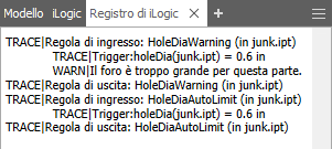 Eseguire la regola. I messaggi iLog vengono visualizzati nel gruppo di registro iLogic.