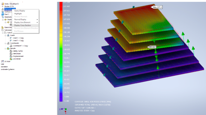 È ora possibile visualizzare la sezione trasversale dell'elemento Shell nella post-elaborazione. Per visualizzare la sezione trasversale, fare clic con il pulsante destro del mouse su Elementi nella struttura Analisi e selezionare Visualizza sezione trasversale.