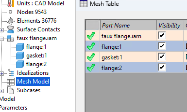 Tabella mesh presenta ora l'elenco dei componenti nella stessa sequenza visualizzata nella struttura dell'analisi.