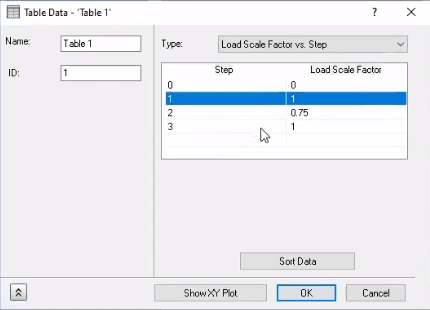 - I valori di Fattore scala di carico sono input dell'utente, mentre i valori di Passo si incrementano automaticamente di uno quando si immette un fattore di scala di carico.