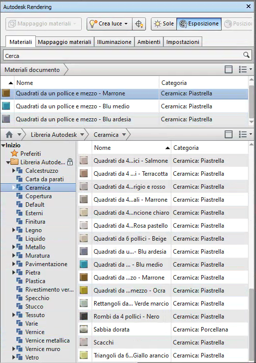 Nella scheda Materiali, passare alla libreria di Autodesk e fare clic per selezionare un tipo di materiale.