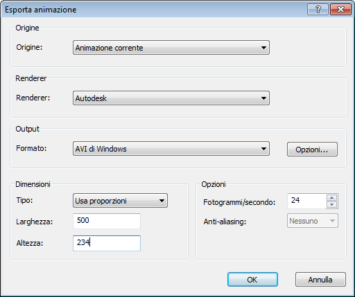 Impostare le altre caselle della finestra di dialogo Esporta animazione e fare clic su OK. Per ulteriori informazioni, vedere Finestra di dialogo Esporta animazione.