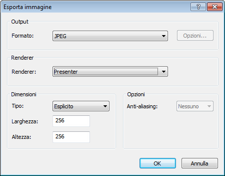Selezionare un'opzione di rendering dall'elenco a discesa Renderer. Per ulteriori informazioni, vedere Finestra di dialogo Esporta immagine.