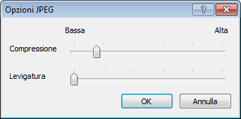 Per il formato di file JPEG, fare clic sul pulsante Opzioni e utilizzare la finestra di dialogo Opzioni JPEG per specificare le impostazioni di compressione e levigatura.