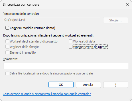Nel caso di progetti condivisi basati su file e su server, i flussi di lavoro sono quasi identici. Le procedure per attivare i workset, sincronizzarsi con il modello centrale, caricare le modifiche più recenti sul modello centrale e rilasciare la proprietà dei workset sono identiche.