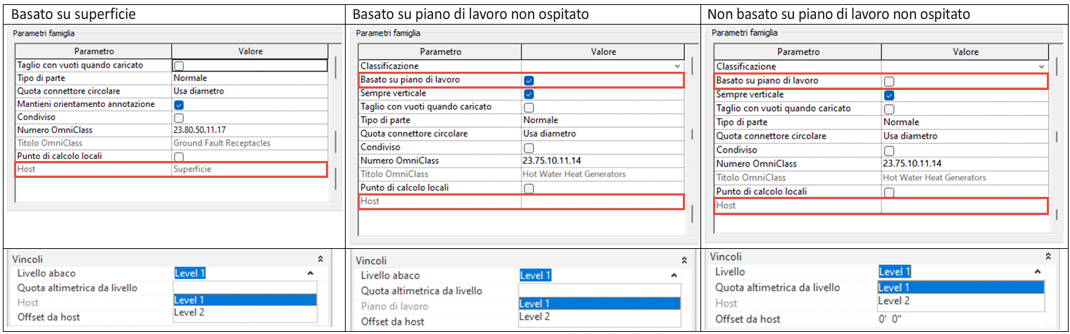 La definizione del contenuto ha effetto anche sulla proprietà correlata al livello disponibile. Esiste un valore della proprietà Livello abaco negli elementi basati su piano di lavoro non ospitati e basati su superficie. Gli elementi non basati su piano di lavoro non ospitati non dispongono di una proprietà Livello abaco. Ma presentano una proprietà Livello, come riepilogato nella seguente tabella: