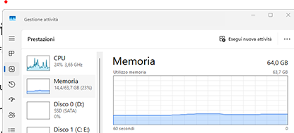 - L'attivazione di Grafica accelerata in più viste può aumentare l'utilizzo della memoria. È consigliata una capacità RAM aggiuntiva.