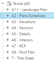 Quando si aggiungono tavole ad un progetto, le tavole vengono elencate nel Browser di progetto sotto Tavole (tutto).