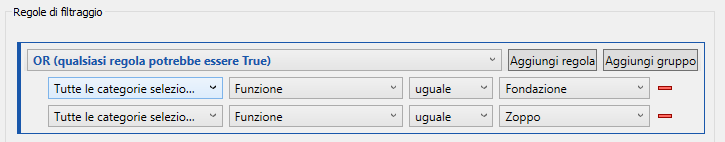 Selezionare una o più categorie per il filtro. Se si selezionano più categorie, è possibile utilizzare parametri comuni a tutte le categorie selezionate durante la definizione delle regole.