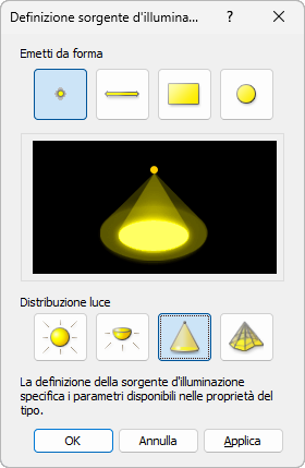 Viene visualizzata la finestra di dialogo Definizione sorgente d'illuminazione.