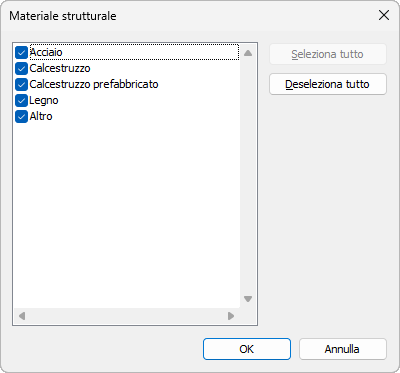 Selezionare i materiali da visualizzare e fare clic su OK. Per default, sono tutti selezionati.
