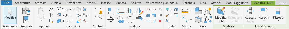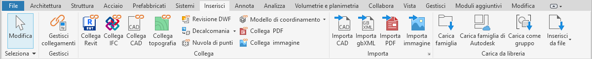 La barra multifunzione viene visualizzata quando si crea o si apre un file e fornisce accesso a tutti gli strumenti necessari alla creazione di un progetto o di una famiglia.