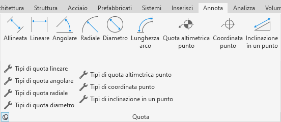 Per alcuni gruppi, è possibile aprire una finestra di dialogo per definire impostazioni correlate. La freccia di avvio di finestra di dialogo nella parte inferiore di un gruppo consente di aprire una finestra di dialogo.