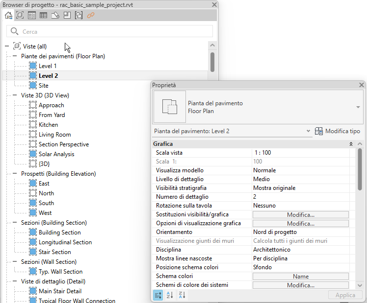 Le finestre ancorabili possono essere spostate e ridimensionate. Possono essere mobili o ancorate ad una posizione all'interno della finestra dell'applicazione Revit o trascinate fuori della finestra dell'applicazione Revit in una finestra separata e spostate su un altro monitor.