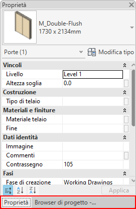 Nella seguente immagine, il Browser di progetto e la tavolozza Proprietà sono stati raggruppati. Notare che la tavolozza Proprietà è la scheda attiva.