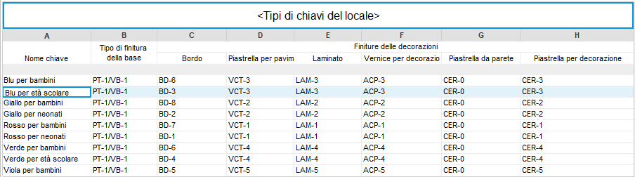 Ad esempio, utilizzare un abaco chiave per elementi quali porte o locali. Le selezioni delle minuterie per porte sono specifiche di una porta e della relativa modalità di utilizzo. Anziché creare un tipo di famiglia per ogni singola configurazione della porta, è possibile creare un abaco chiave composto da tutte le configurazioni delle minuterie per porte e assegnare i valori a ciascuna porta con un abaco chiave. In questo modo, è possibile applicare le diverse selezioni di finiture per un locale anche agli elementi del locale. Questi sono solo due esempi; con un po' di immaginazione si può pensare ad altre opportunità in cui è possibile utilizzare abachi chiave.