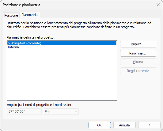Impostazione della posizione in Revit sul sistema di coordinate condivise