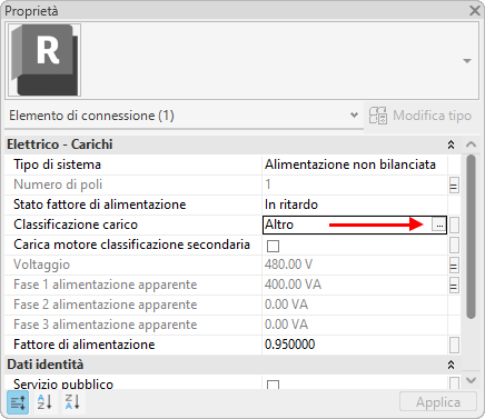 È possibile utilizzare l'Editor di famiglie per assegnare una classificazione del carico a una famiglia di connettori elettrici.