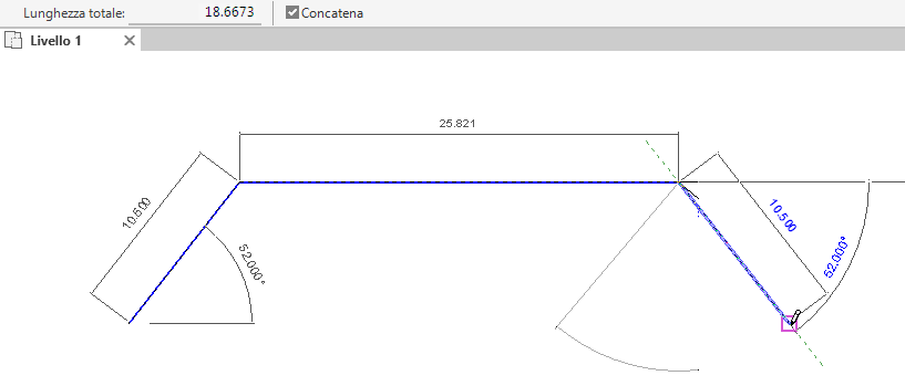 Catena di misura con la lunghezza totale visualizzata nella barra delle opzioni