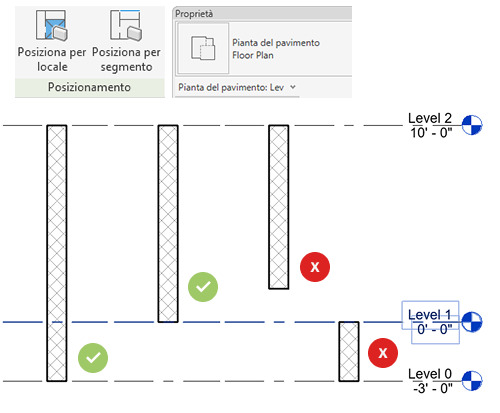 È possibile creare muri finiti in un locale utilizzando un segmento di muro o all'interno dei contorni di un locale.