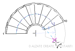 - Creare una rampa a chiocciola con pedate triangolari come nella procedura precedente, ma specificare il punto finale del pianerottolo una volta raggiunto il numero di alzate desiderato (inferiore al totale).